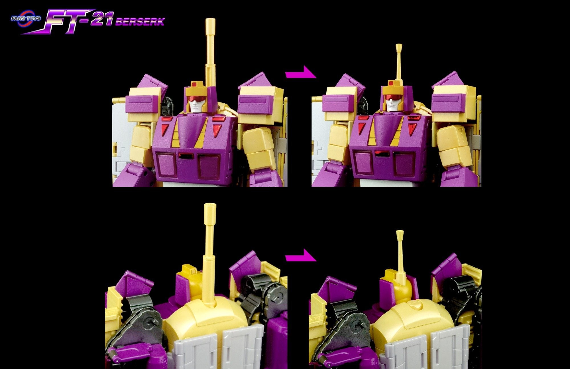 Otra obra maestra de Fanstoys, en homenaje a G1 Blitzwing, un guerrero triple cambiante de Decepticon, se transforma de robot en caza a reacción y tanque.