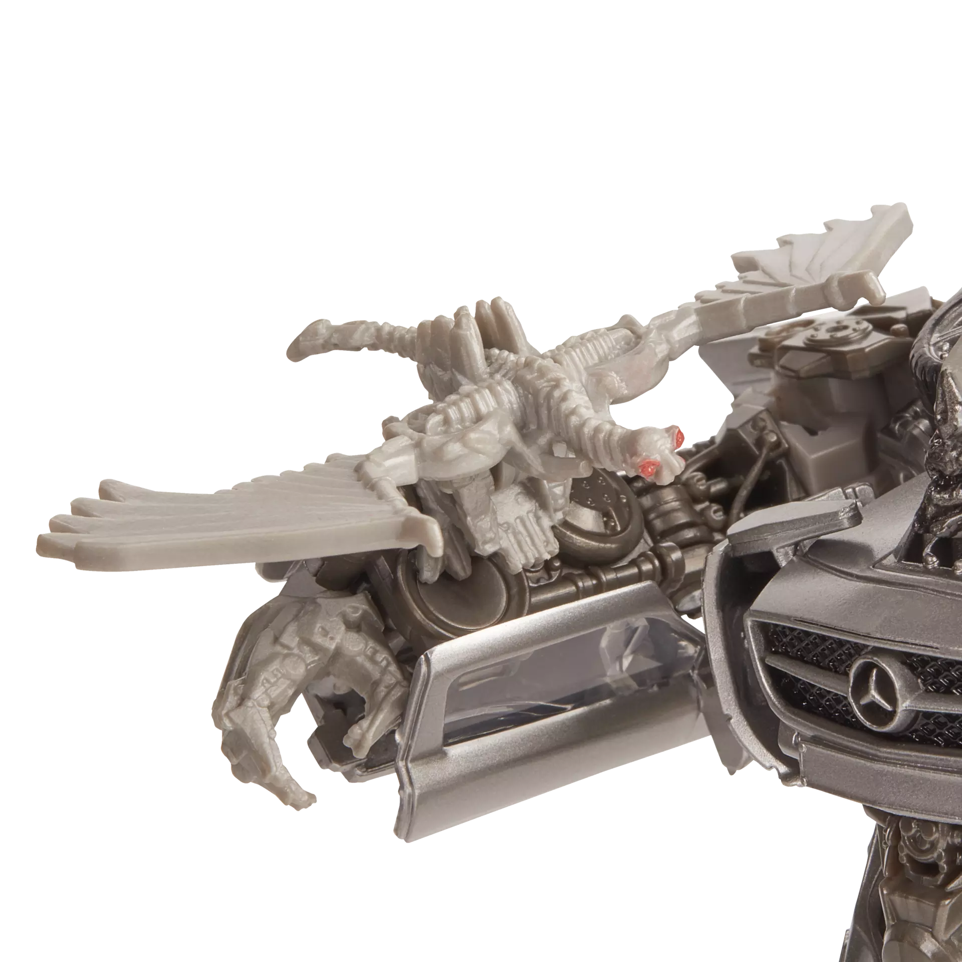SOUNDWAVE A ESCALA DE 11,4 cm: La figura está altamente articulada, presenta una decoración vívida inspirada en la película e incluye un detallado accesorio Laserbeak que se acopla a su brazo.